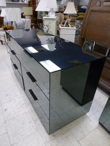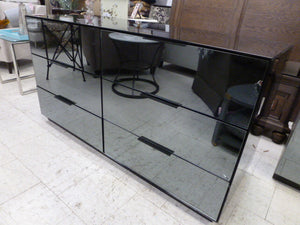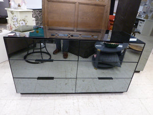 MOBILIA - BLACK MIRRORED SIX DRAWER LOW PROFILE DRESSER -