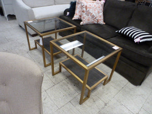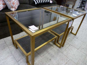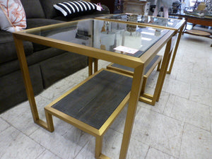 2 of 2 Brushed brass and Glass Side / End table by CARVER - 24 x 24 x 22" H "Like new"